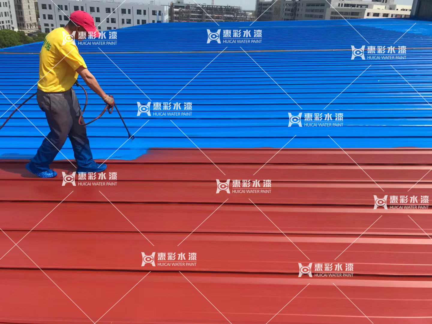 如果銹蝕嚴(yán)重的彩鋼瓦會出現(xiàn)局部漏水的情況,此時我們需要先進(jìn)行防水、補(bǔ)漏的施工,防水補(bǔ)漏有多種方式,我們公司常用的一種是采用專用的防水涂料,配合增強(qiáng)型聚酯布進(jìn)行防水施工,效果明顯。關(guān)于防水補(bǔ)漏的具體施工辦法這里就不過多講解,大家可以查看《惠彩彩鋼瓦屋面翻新 修復(fù)解決方案》,是專門針對彩鋼瓦屋頂、屋面防水施工的講解。